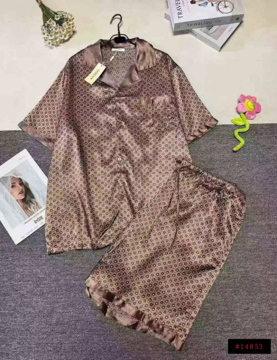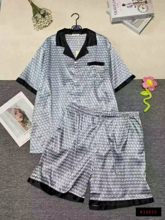 外贸男士仿真丝绸缎冰丝薄款短袖短裤家居服套装,小整...