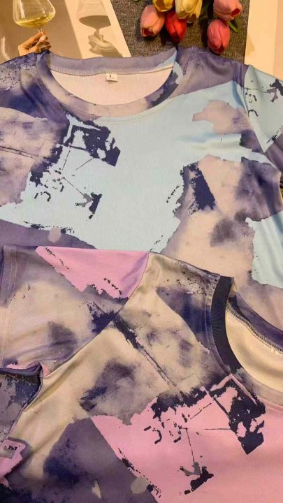 水墨画印花独特设计遮肉显瘦宽松百搭T恤,[爱心]1000件左右,兰色为主,码数L-4XL,穿90-150斤,[666]工厂原包装瑕疵,分货加0.5