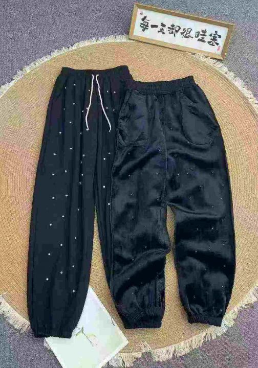 韩系重工镶钻满天星加绒束脚卫裤760件,秋冬清仓9.9,分货11.8,