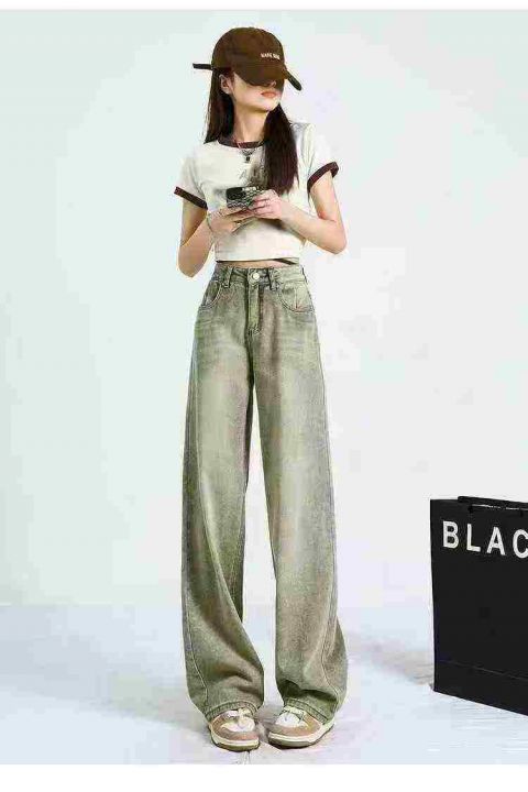 怀旧复古直筒牛仔裤女夏季新款美式高腰显瘦宽松阔腿拖地裤220条全清12.8元,码数S到3XL,正品独立包装[庆祝][庆祝][庆祝]