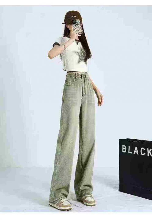 怀旧复古直筒牛仔裤女夏季新款美式高腰显瘦宽松阔腿拖...