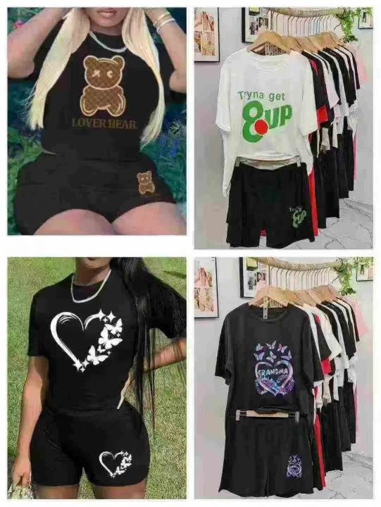外贸亚马逊短袖套装,清7.8码数S一5XL,数量4800套左...