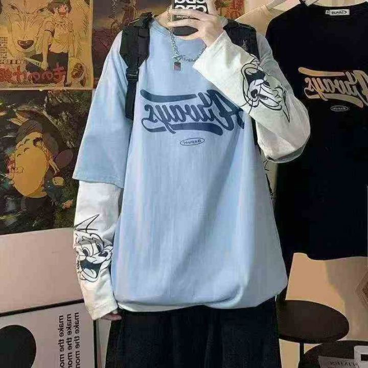 全清价5.9捡漏326件假两件长袖可爱图案t恤男潮牌嘻哈春秋棉T上衣,独立包装...