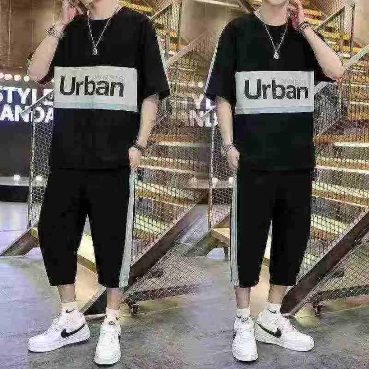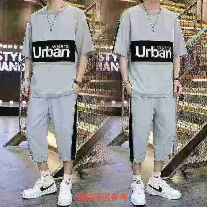 全清价10.9短袖t恤套裤套装男士夏季新款休闲宽松搭配一套帅气潮流运动套裤...