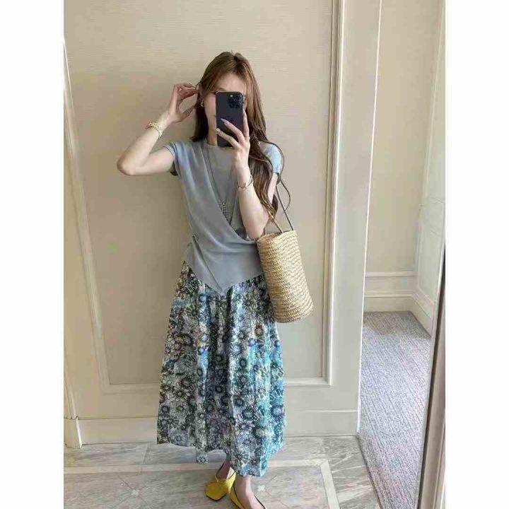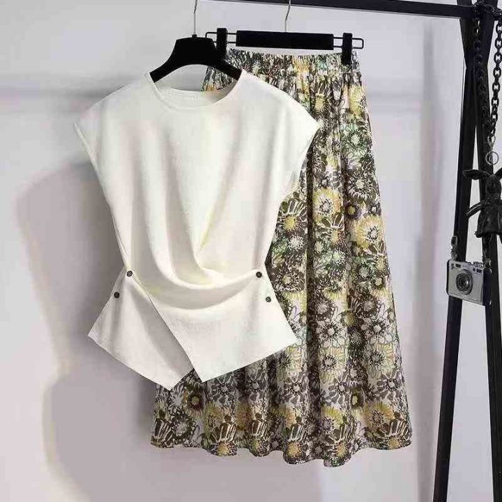 时尚休闲套装女新款夏装穿搭一整套洋气短袖T恤半身裙两件套,码数S-XL,数量3200套,独立包装,货品干净漂亮有质感。