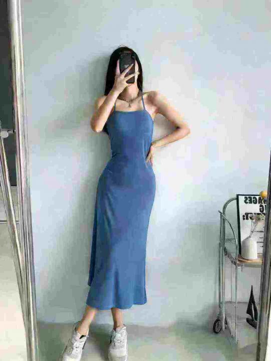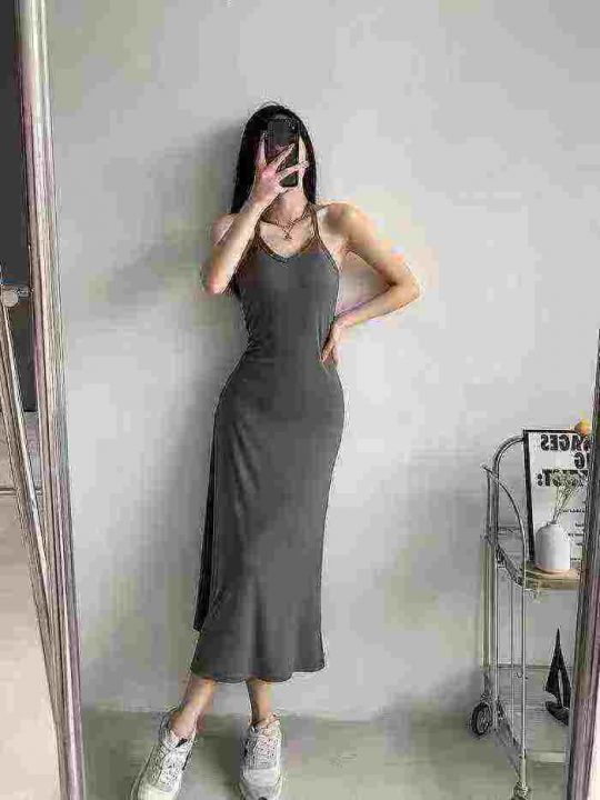 [月亮]:法式修身显瘦气质吊带挂脖连衣裙