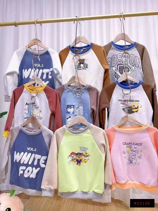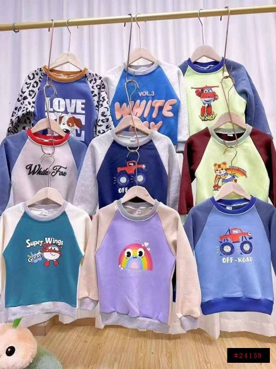 [太阳]5.8元清2000件、秋冬童装加绒圆领保暖卫衣,好质量的,款式花型很多,上百种颜色花型随机混发,100件起批6.8元一件@_@