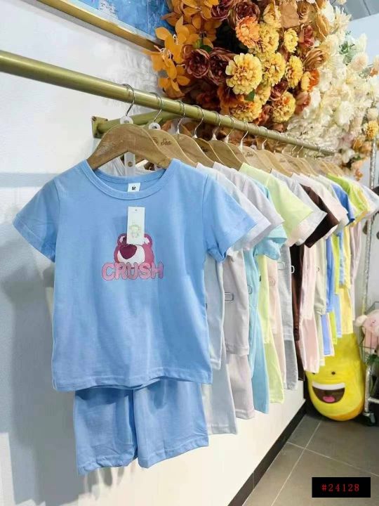 童套装[太阳]全清价6.8、1800套,码数M-XL、适合2-6岁孩童、纯棉糖果色宽松时尚休闲运动短袖短裤童套装,面料柔软舒适透气,颜色图案多,不仅限图片视频款,上身效果巨巨好看爱、面料100%纯棉、超低价[哇]太划算啦[666]全部全新独立包装,带吊牌配小份100/200件起多花色混配7.5@_@