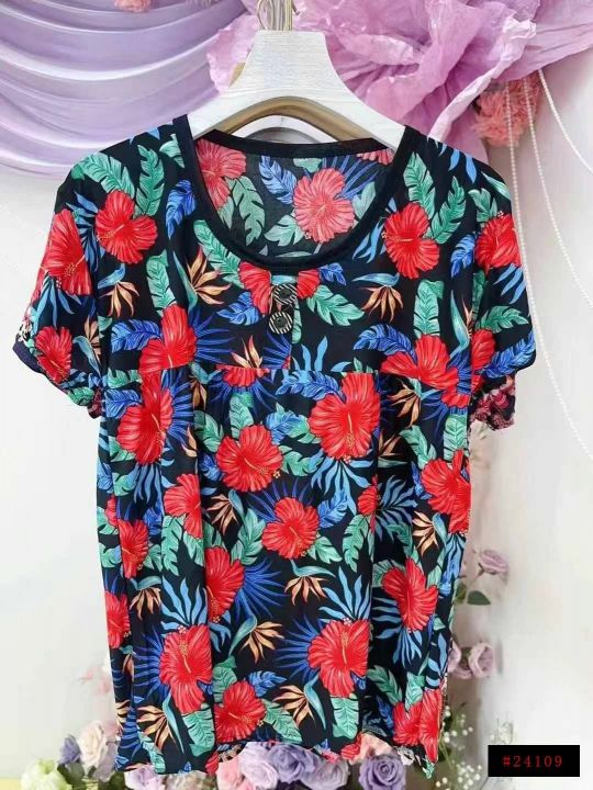 上身短袖[太阳]全清5.8,5000件,均码。 夏季新款中老年妈妈装宽松花短袖,有弹力,面料手感贼舒服[色],垂感好[666]花色漂亮[哇],这个性价比直接拉满✅全部全新独立包装,100件起多花色混配6.5@_@