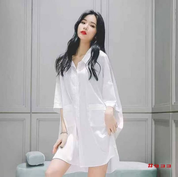 [月亮]:夏季薄款纯欲男友风家居裙白衬衫