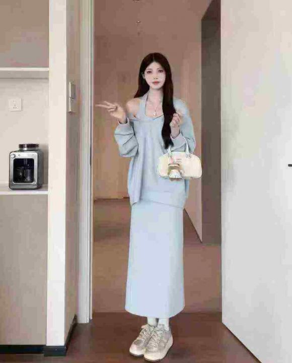 韩系慵懒风连衣裙套装102套10.8,面料柔软舒适,有垂...