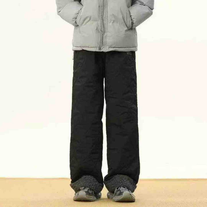 防寒休闲羊羔保暖裤男女冬季潮宽松葫芦纹防水直筒裤加...