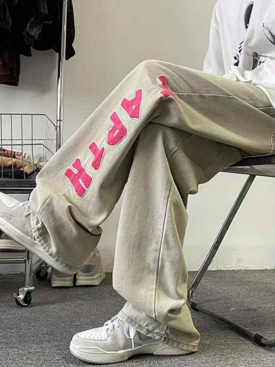 春秋新款美式高街vibe风字母植绒刺绣小众设计感男士直筒裤,独立包装带吊牌,码数S-XL码,190件左右,全清9.9元超低价秒杀!
