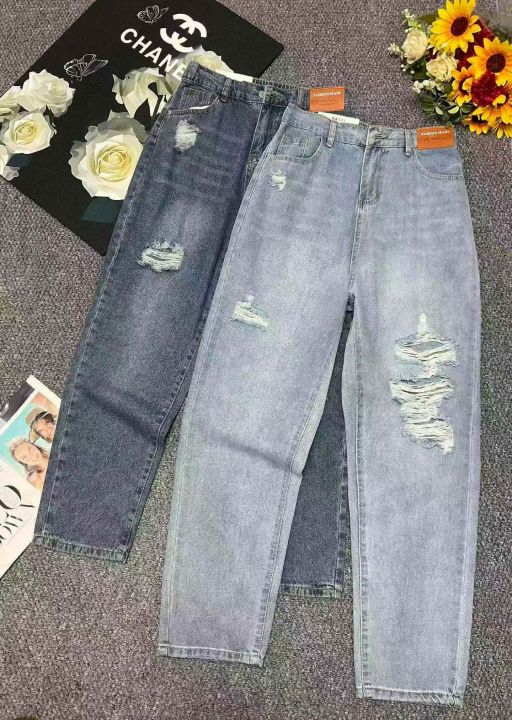 春夏季新款微胖MM破洞设计款牛仔老爹哈伦裤,独立包装...