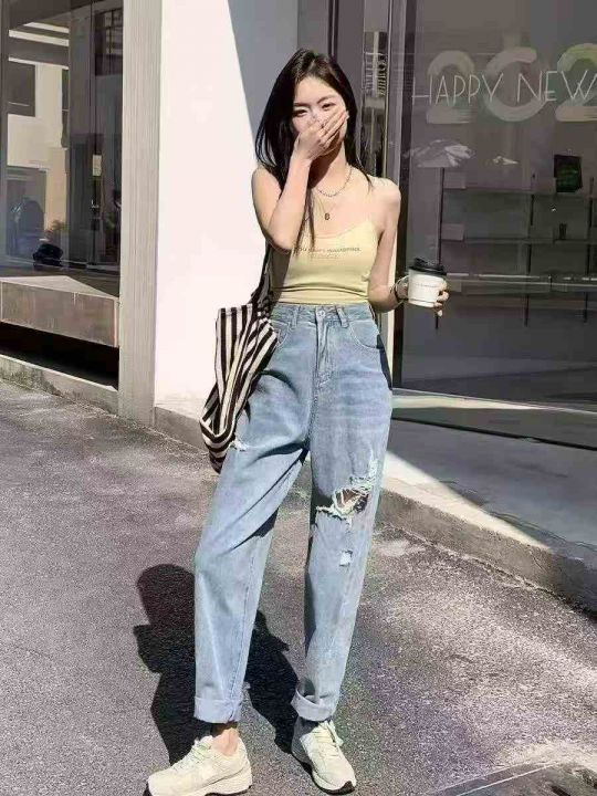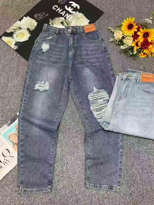 春夏季新款微胖MM破洞设计款牛仔老爹哈伦裤,独立包装...