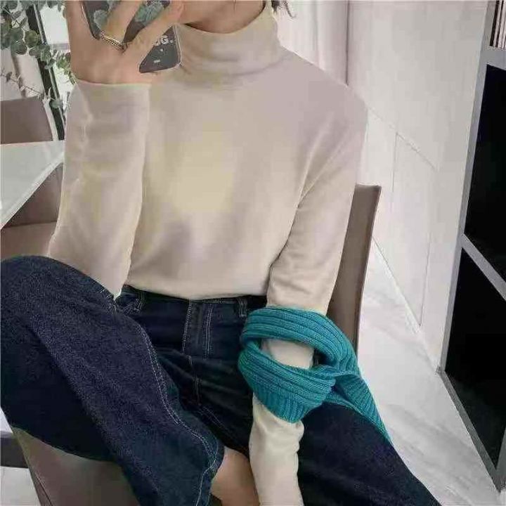 木耳边半高领打底衫女秋冬新款加绒保暖内搭外穿上衣,...