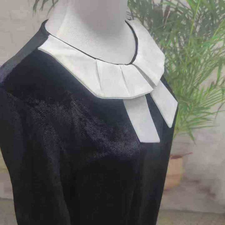 5.5元[爱心][爱心] 赫本风黑色金丝绒长袖连衣裙,独立包装,白色衣领串色,码数s-xl,数量115件左右。