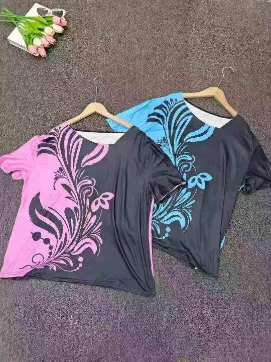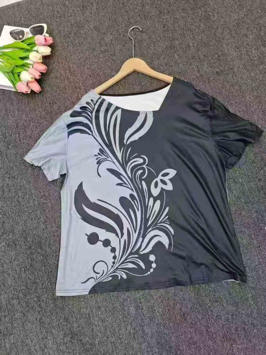 Printed Diagonal Neck Women\'s Short Sleeves印花斜领女式短袖