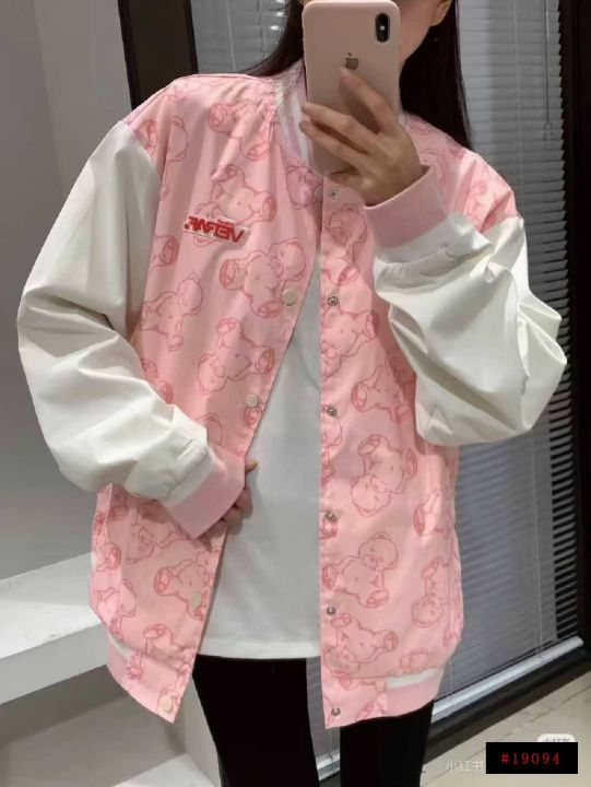 韩版甜美减龄宽松遮肉百搭男女同款棒球服外套,[爱心]1500件左右,三个颜色,粉色为主,码数S-XL,穿70-160斤,浙江杭州货,原包装️无瑕疵,[666]实体店品质,(模特图仅供参考),分货加一@_@