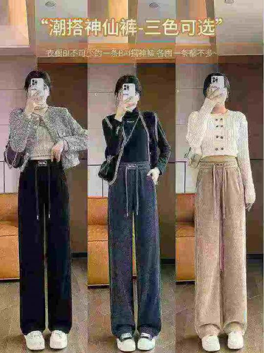 灯芯绒裤子女秋冬季阔腿女裤加绒加厚窄版女士雪尼尔休闲直筒裤女,数量655...