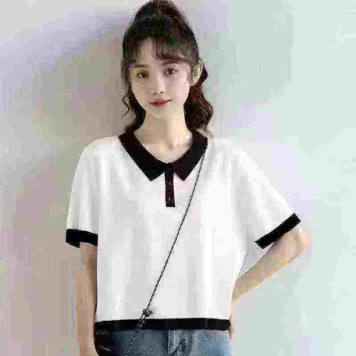 正肩冰丝短袖女T恤女polo上衣,黑白两色,码数s码到L码123码,面料柔软舒服...