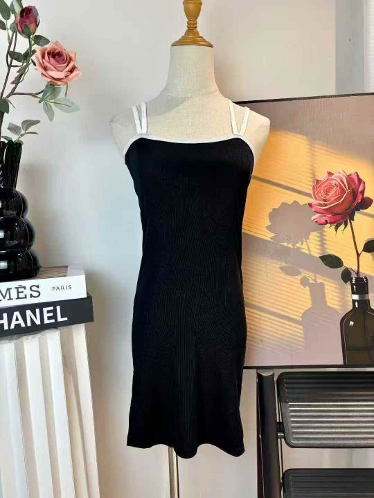 辣妹黑色撞色吊带连衣裙女装夏季新款性感露背修身无袖收腰包臀裙 独立包装 码数1-4码 数量450件 全清5.8 分货加0.5