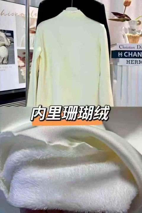木耳边半高领打底衫女秋冬新款加绒保暖内搭外穿上衣,两个图片款