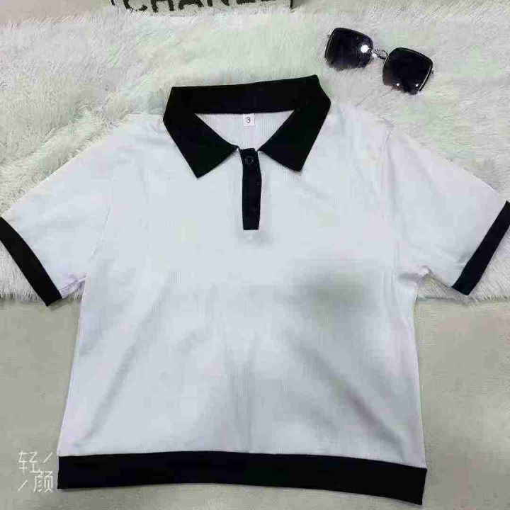正肩冰丝短袖女T恤女polo上衣,黑白两色,码数s码到L...