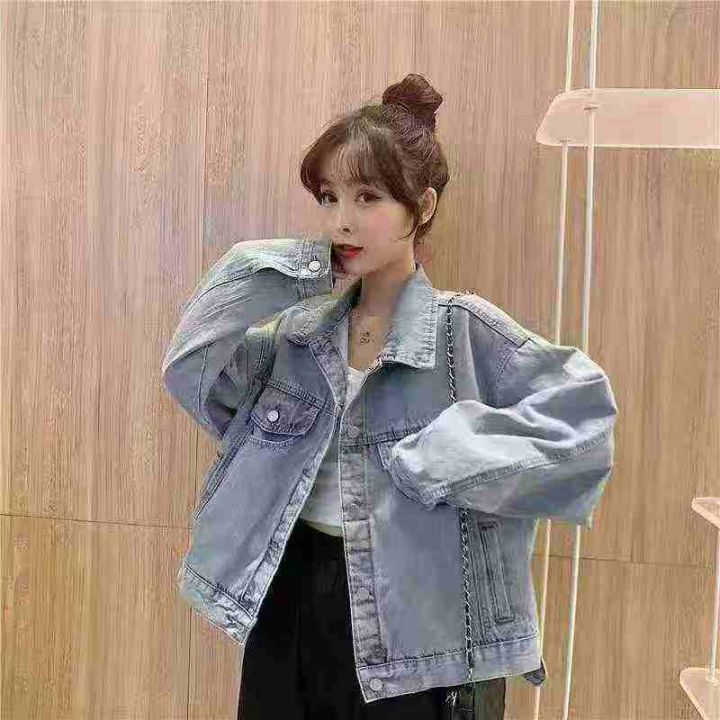 50件短款牛仔外套少女秋冬2025新款宽松韩版百搭复古夹...