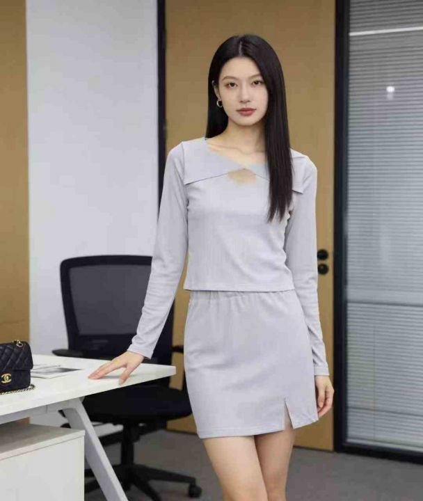 纯色休闲套装177套7.8,面料舒适高弹力,镂空设计,裙子松紧腰,下摆开叉,...
