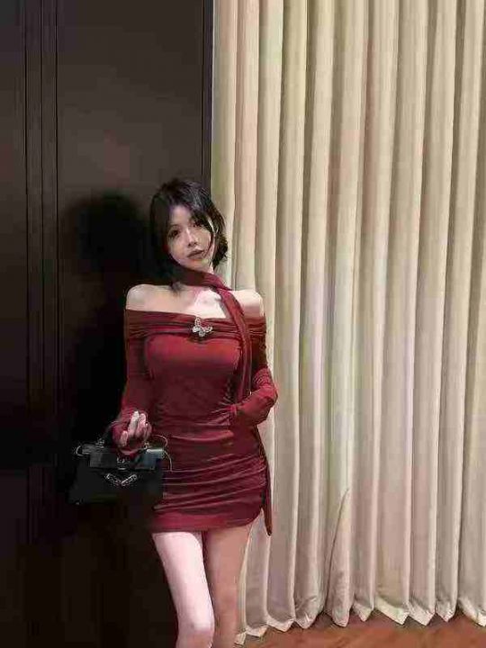 一字肩紫色挂脖长袖连衣裙女春秋冬季性感辣妹紧身收腰包臀短裙子 独立包装 码数1-4码。数量630件 全清5.9 分货加0.5