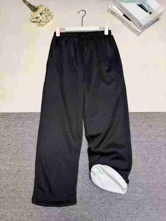 直筒裤子男女款冬季加绒运动裤抽绳裤加厚休闲裤卫裤,黑灰两色