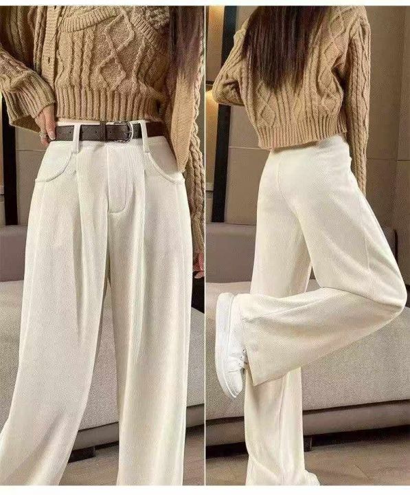 春秋新款宽松百搭网红复古美拉德高腰垂感直筒休闲阔腿...