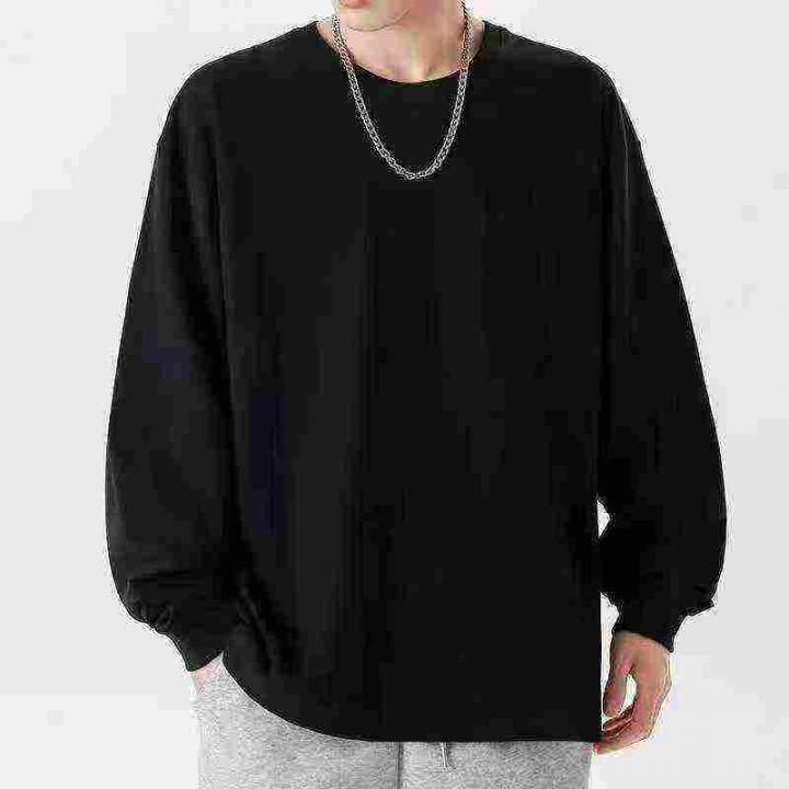 ☕️纯棉220克纯色男士长袖t恤新款春秋潮流ins宽松休...