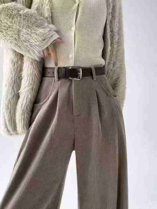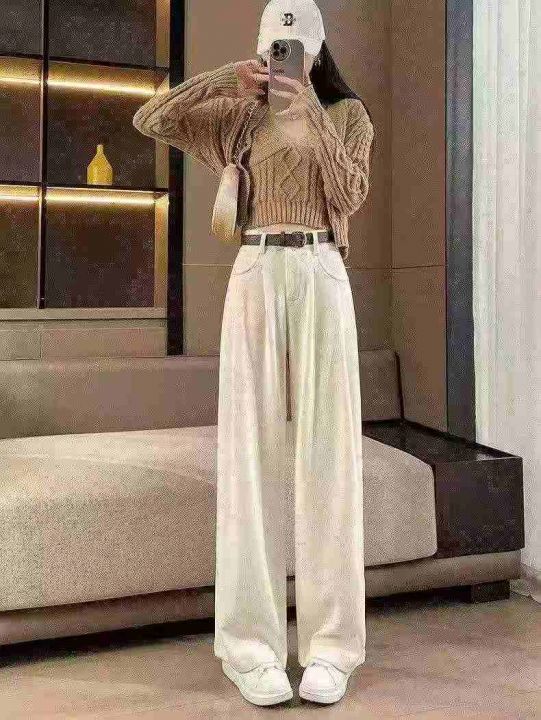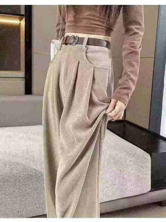 春秋新款宽松百搭网红复古美拉德高腰垂感直筒休闲阔腿...