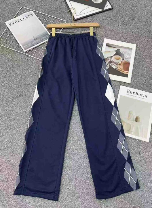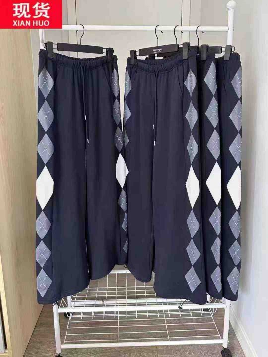☕️男女同款运动休闲裤复古几何印花宽松慵懒超火的高...