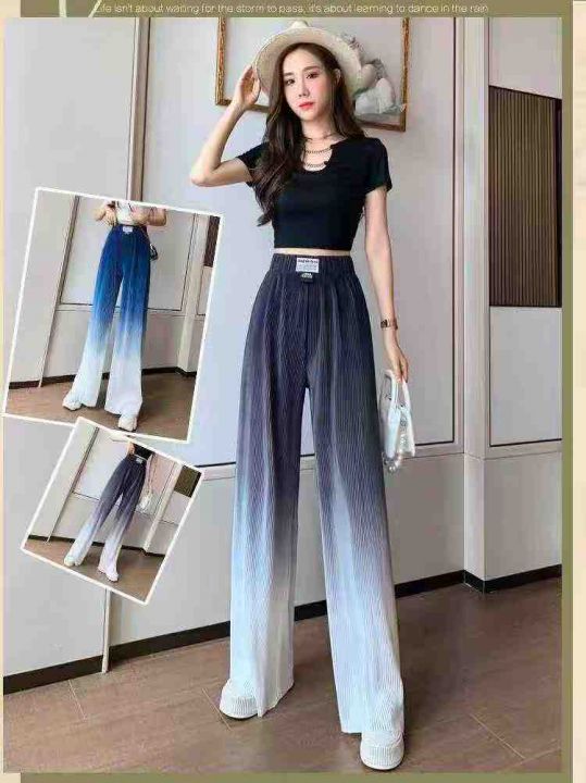 ☕️新款潮ins阔腿裤女褶皱渐变高腰垂感夏拖地裤693条全清8.8元分货+1 ,码数S到3XL,独立包装单款都是几乎蓝色,外贸热销款渐变色裤子[庆祝][庆祝]