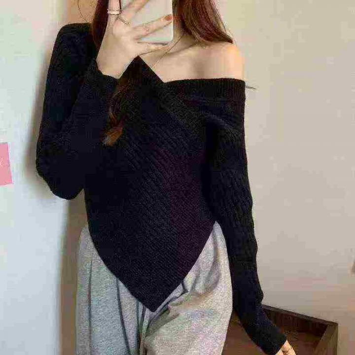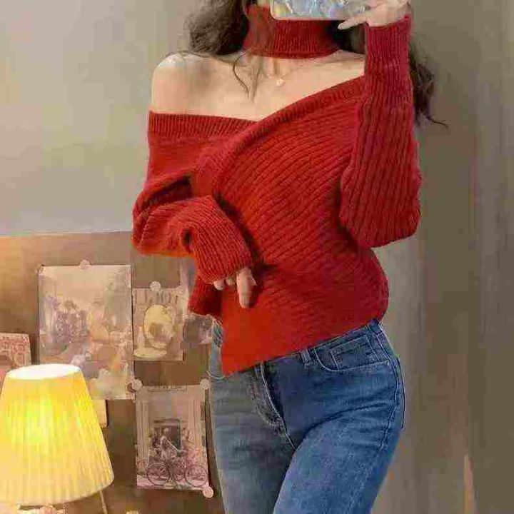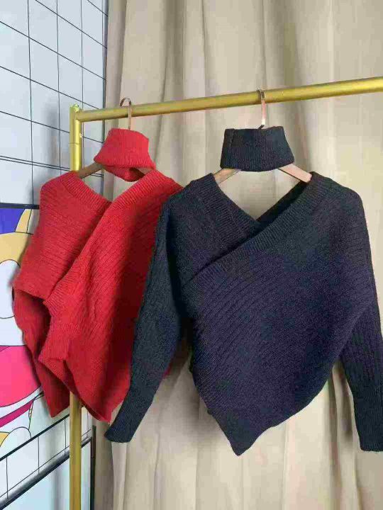 11.8清30件靓妹辣妹挂脖上衣外穿时尚女针织不规则春秋季打底设计韩版显瘦感修身毛衣 面料柔软舒适码数均码 实体店可入 独立包装