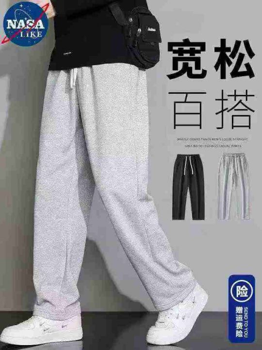 ️日系运动卫裤宽松直筒cleanfit重磅阔腿休闲长裤抽绳华棉加BB绒潮牌男裤,...