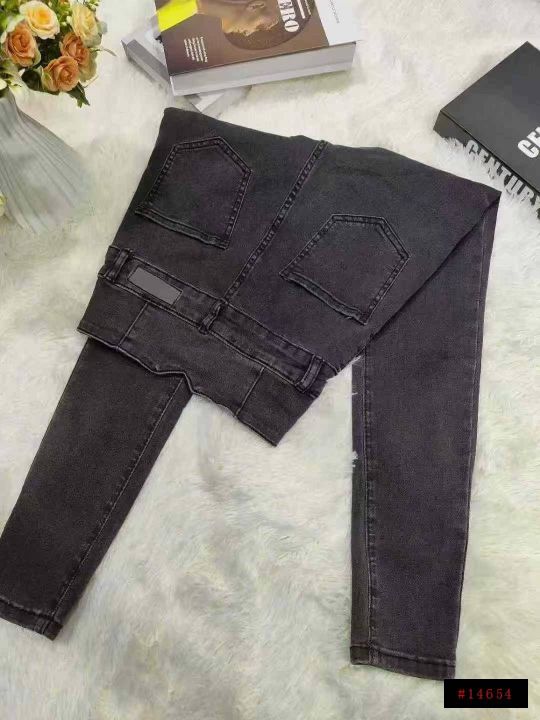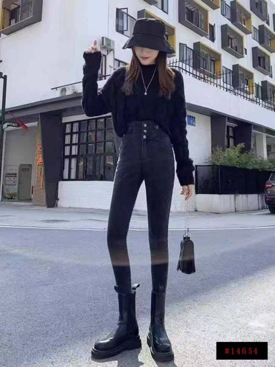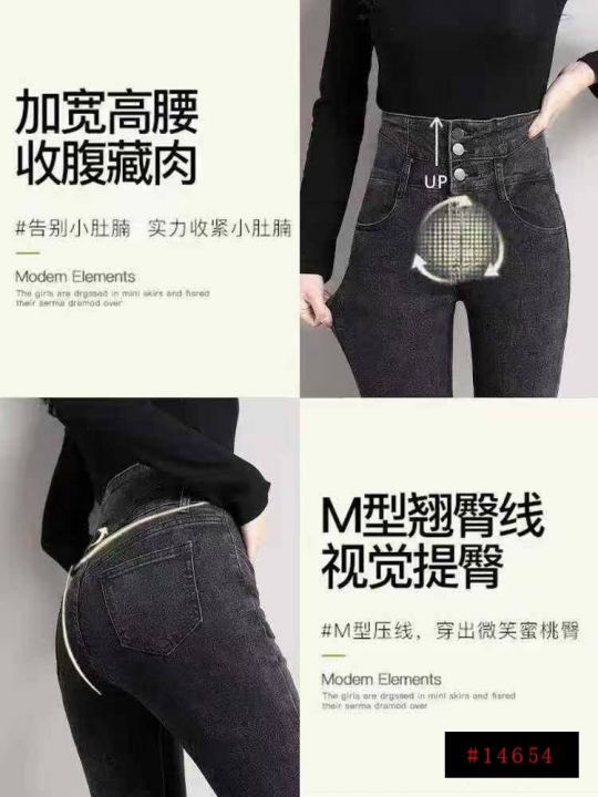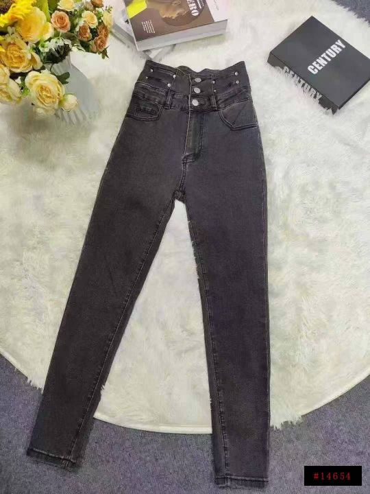 3️⃣云灰色多扣超高腰小脚紧身修身显瘦铅笔牛仔裤38...