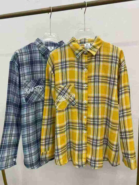 美式复古格子衬衫44件9.5,前后字母印花,有口袋,弧...