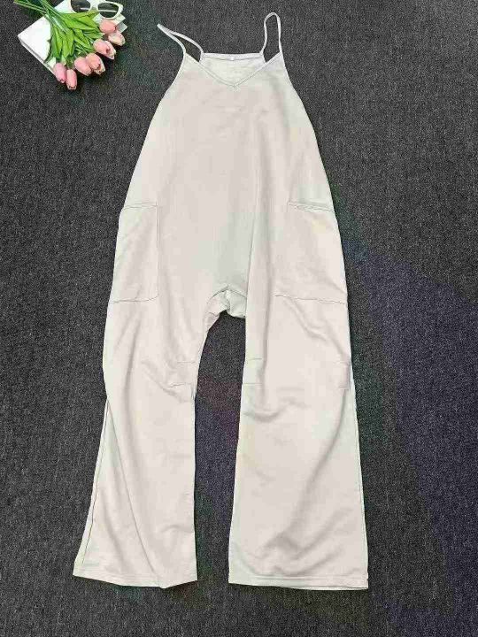 欧美大码V领胖MM浅绿色口袋宽松休闲吊带连体裤,独立包装,700件,S-2XL,全清6.8分货➕1