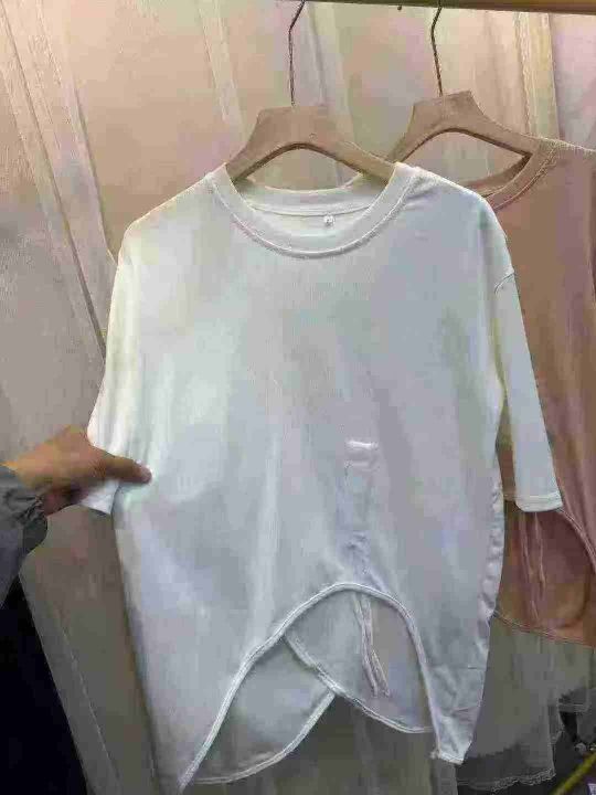 网红开衩不规则中长款中袖抽绳防晒衣t恤女夏洋气时髦防晒上衣潮,数量500左右,码数S一2XL,独立包装,全清5.8元,分货+0.5元