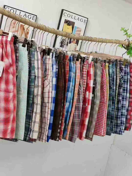 均码,数量5070条左右,纯棉面料,全部独立包装,货品非常漂亮,版型宽松,格子短裤,五分短裤,休闲短裤,基本都是双钱兜,实体店品质,多花色,分货7.8,(沙滩,居家)