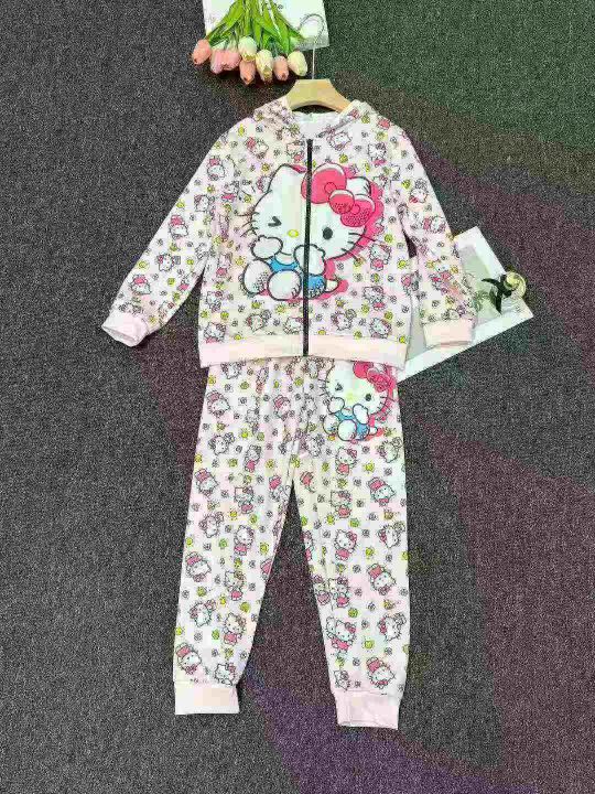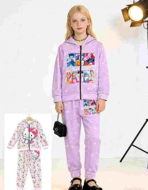 跨境电商男女童同款连帽拉链卫衣套装,独立拉链包装,...