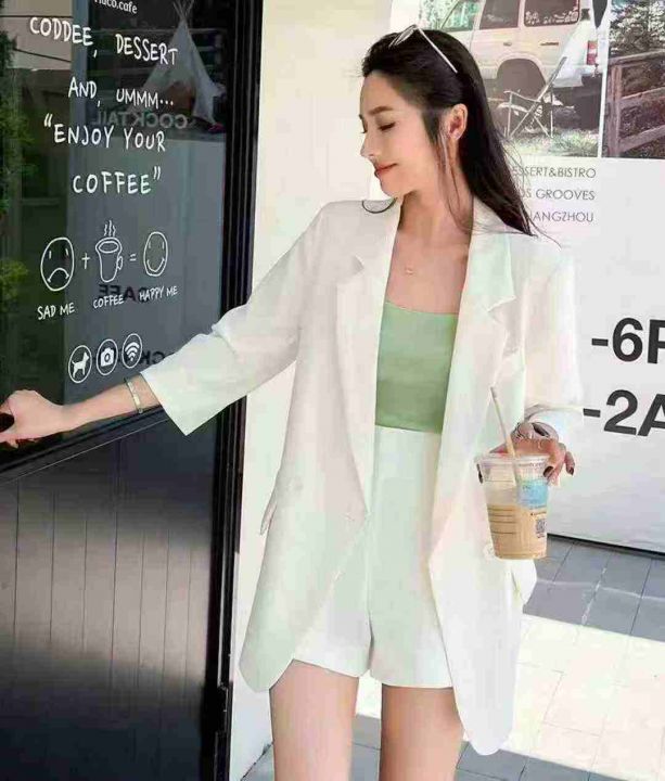 简约气质通勤OL~三粒扣抽褶收腰上衣显瘦七分袖西装外套女秋,107件,码数1-3,独立包装,货品干净,白色为主。(货号:5016#16)