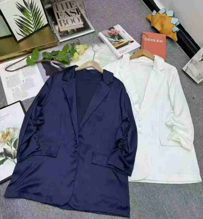 简约气质通勤OL~三粒扣抽褶收腰上衣显瘦七分袖西装外套女秋,107件,码数1-3,独立包装,货品干净,白色为主。(货号:5016#16)