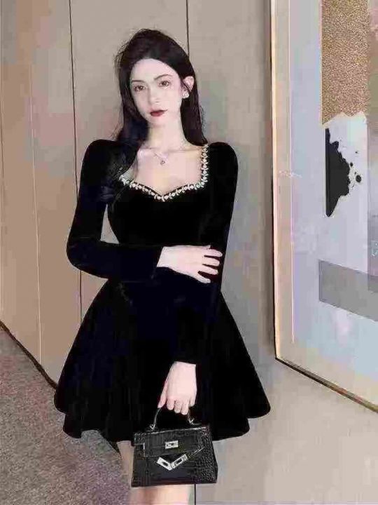 全清8.8法式复古赫本丝绒连衣裙女秋冬显瘦气质女神范高级设计感小众裙子104...