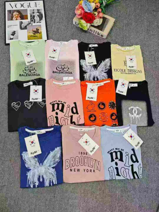 广州档口回收4000件高品质重磅纯棉甜辣靓妹钉珠短袖T恤,均码80-130可穿。后领包边到肩,纯棉品质,版型做工超好。全部独立包装带吊牌。分货加1