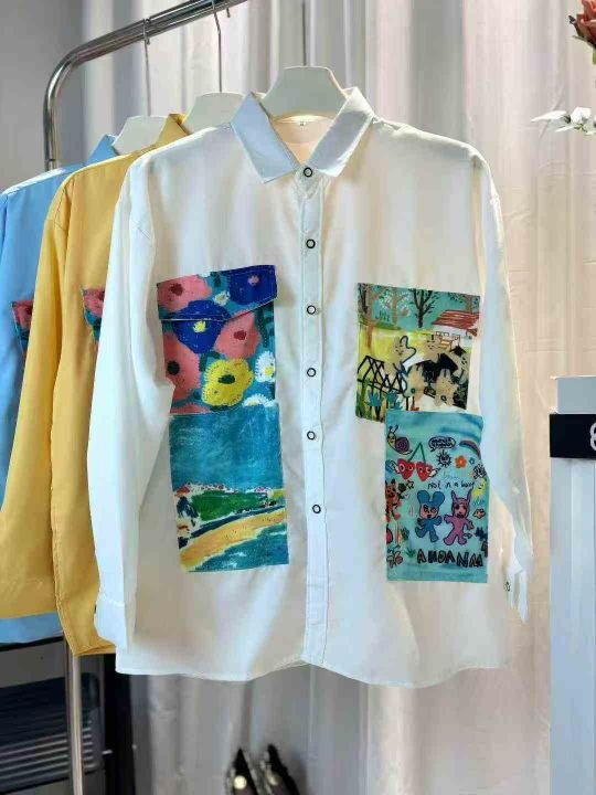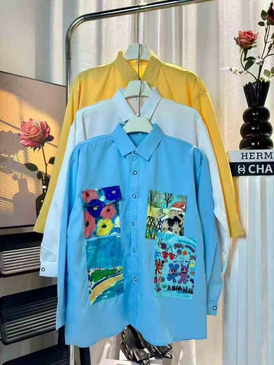 风油画可爱别致花朵小众设计感工装款长袖衬衫上衣 独立包装 码数1-4码 数量200件 全清5.9